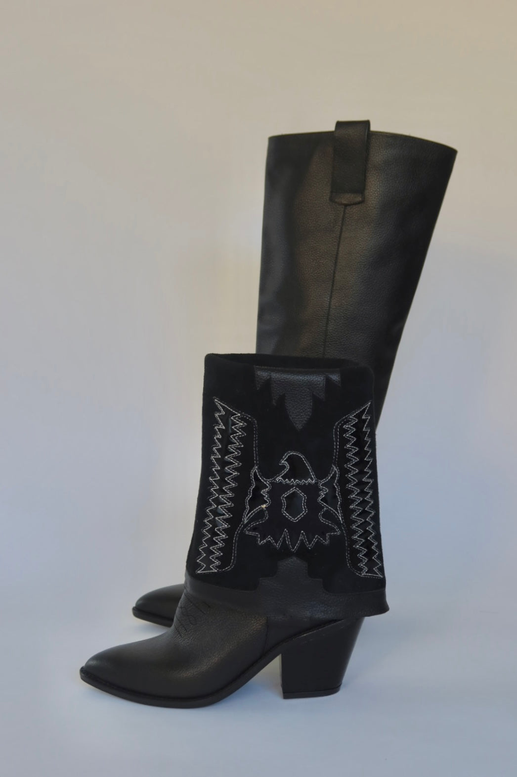 Dos botas en una. Estas texanas 2 en 1 de cuero combinan actitud y versatilidad: úsalas altas para un look mas casual o caña baja cuando quieras algo más atrevido. Su diseño western clásico inventa con un giro funcional que marca tendencia sin perder esencia.