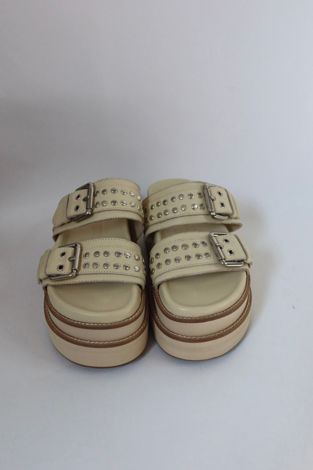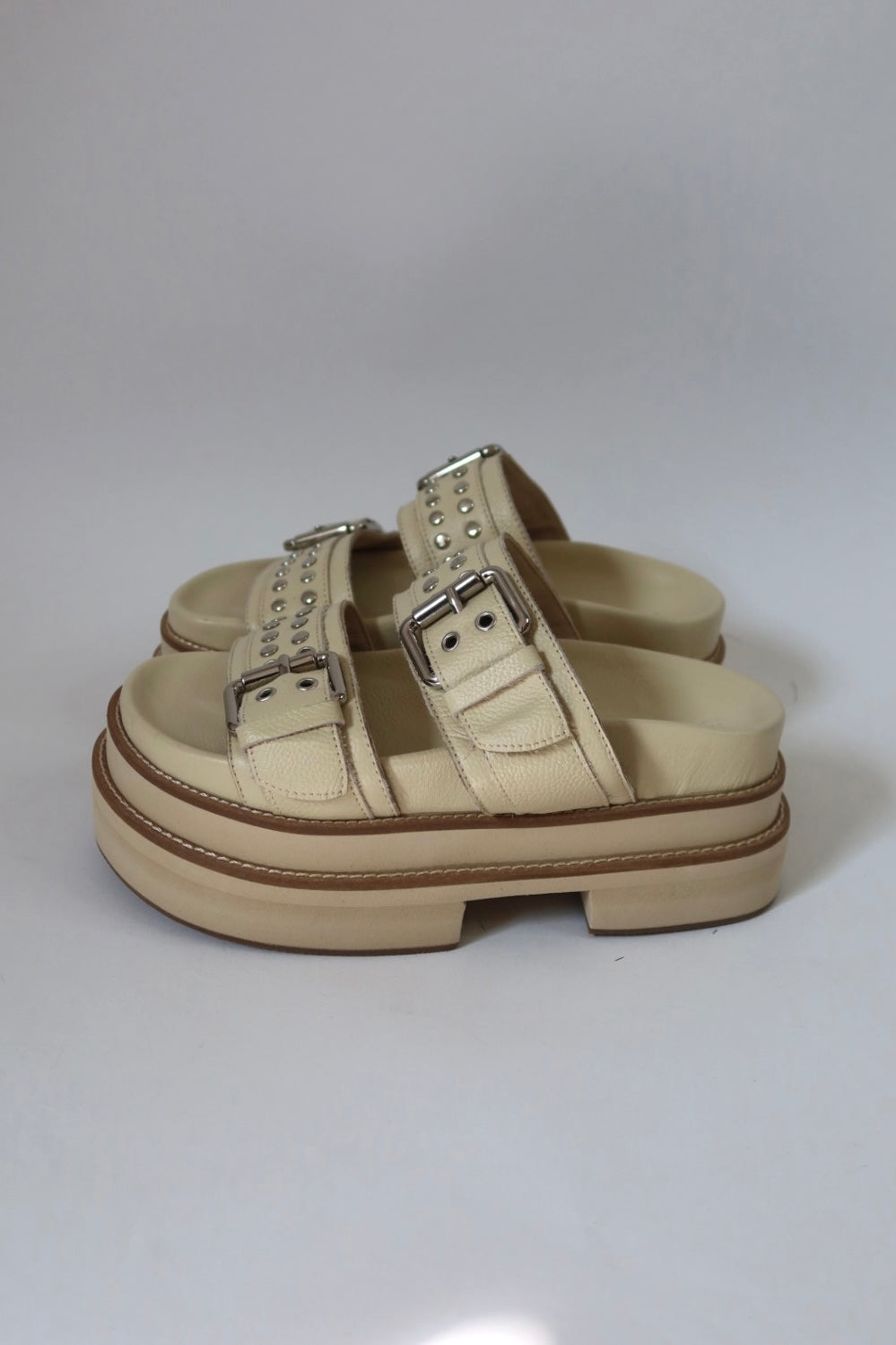 Sandalias de plataforma en 6cm y capellada 100% cuero textura floater.