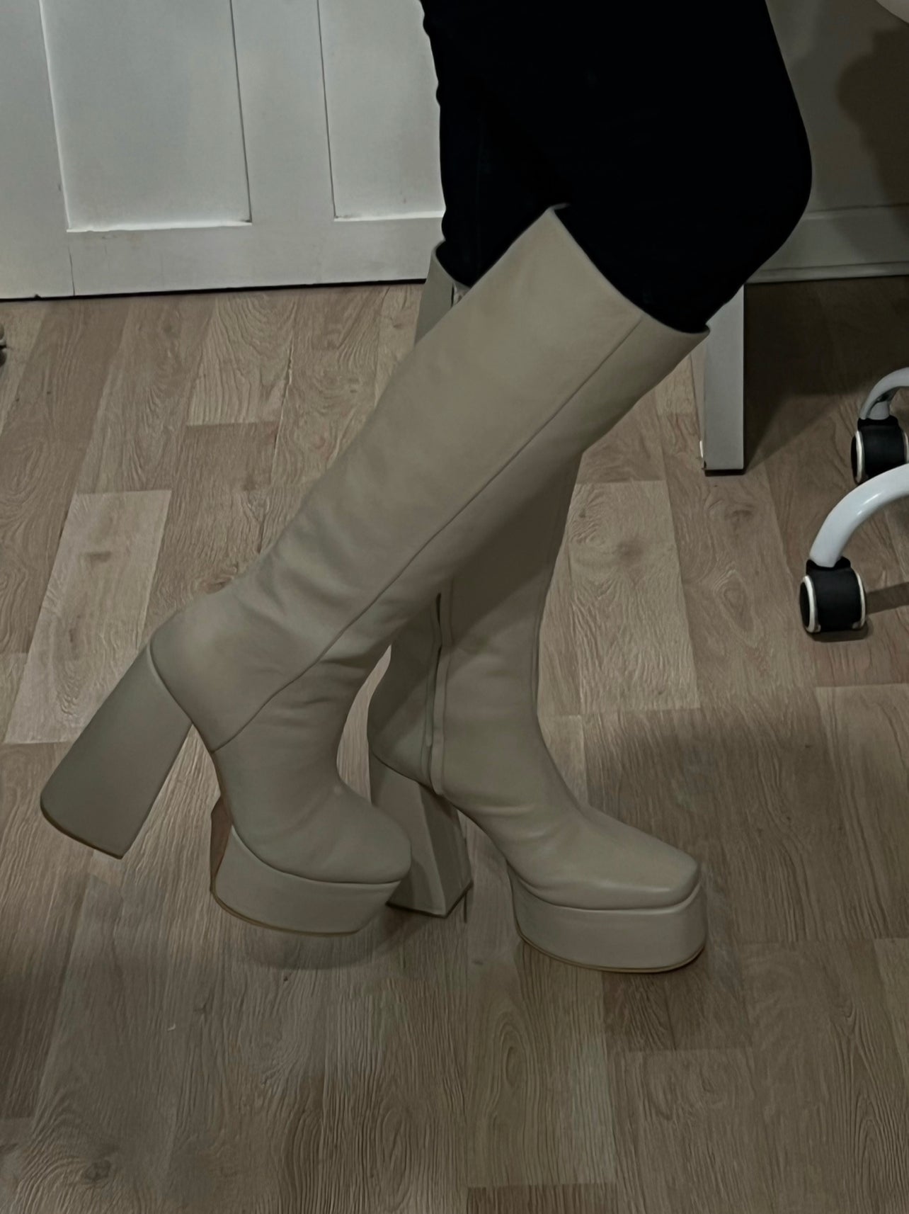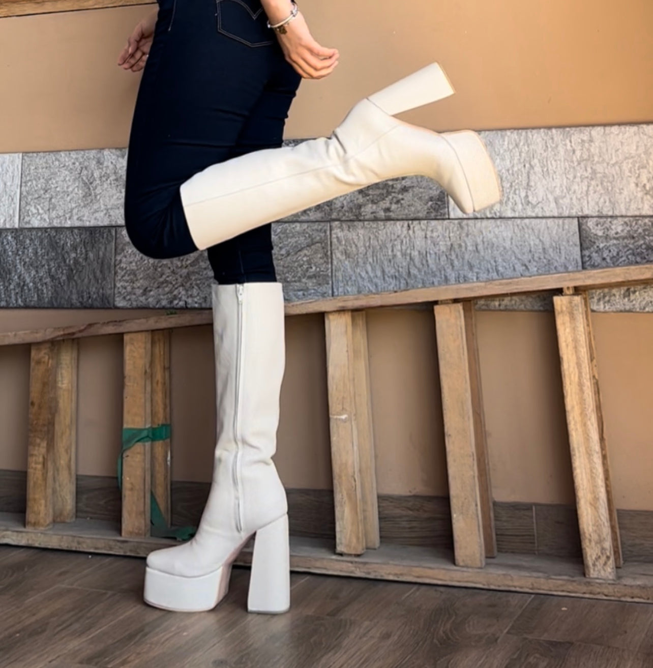 Botas de caña alta textura croco en color chocolate, hechas en 100% cuero interior y exterior.