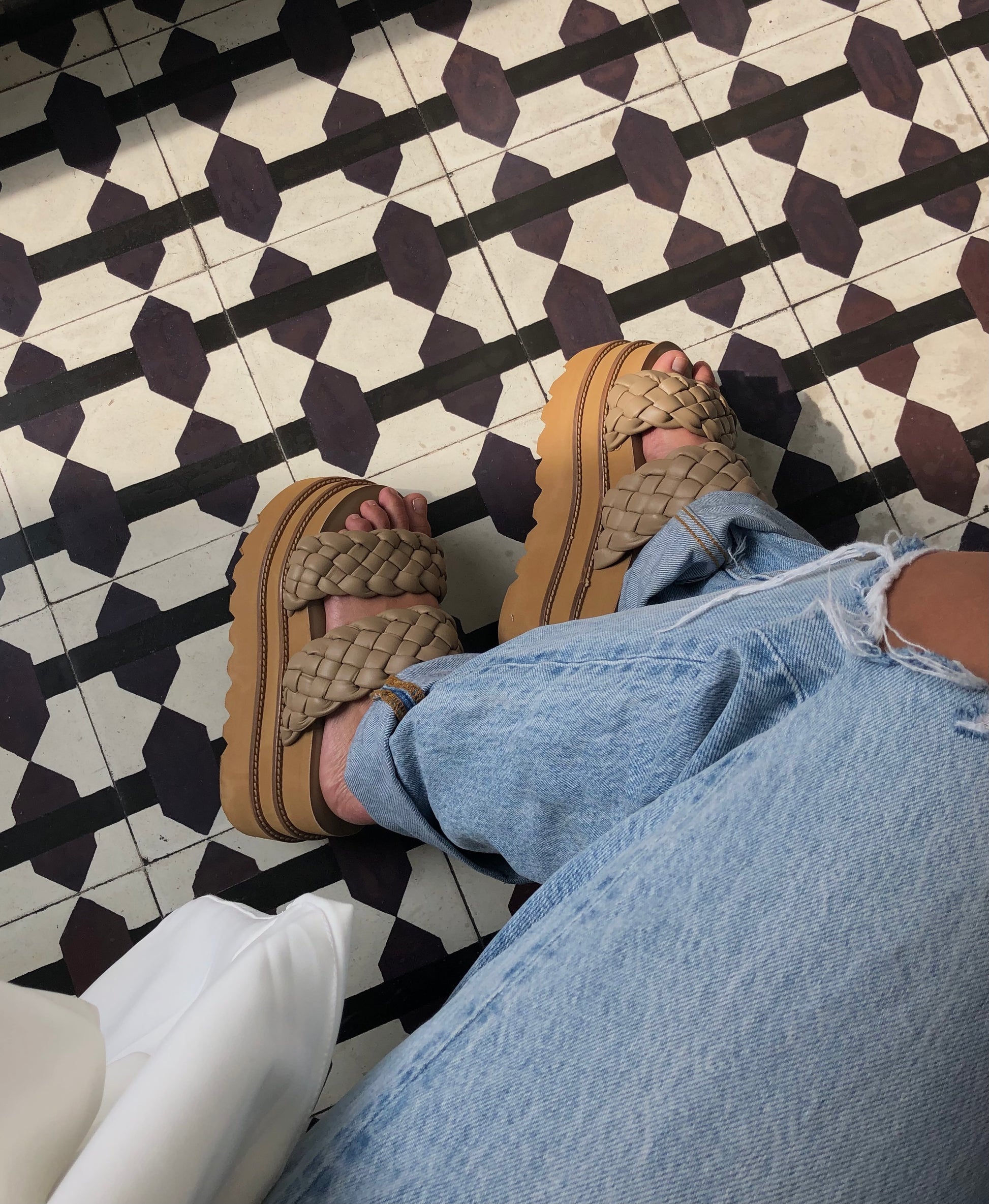 Plataforma de 7 centímetros hechas a mano en color camel. Exterior y forro 100% cuero vacuno.