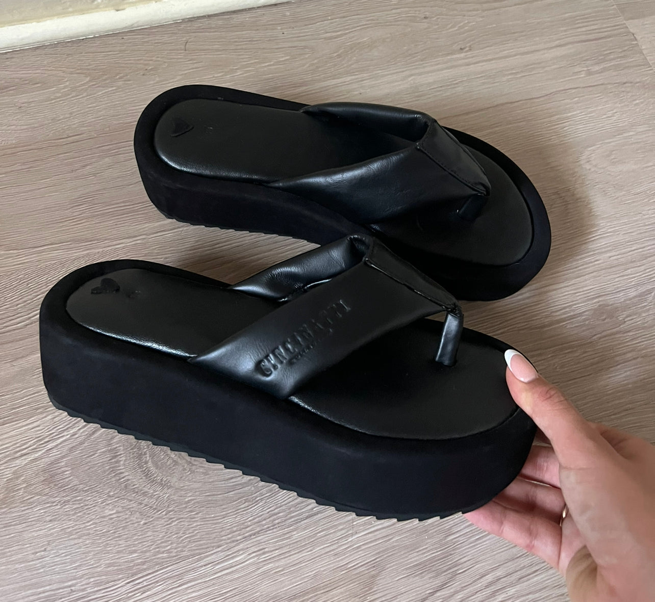 Nuestras sandalias básicas para el verano, hechas en 100% cuero plataforma y capellada con huellas de tractor. El logo de la marca se encuentra en 1 pie de ambos.